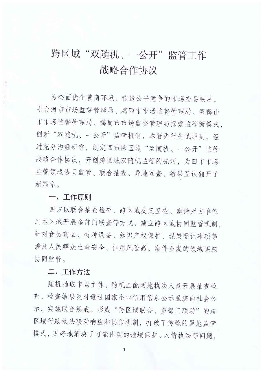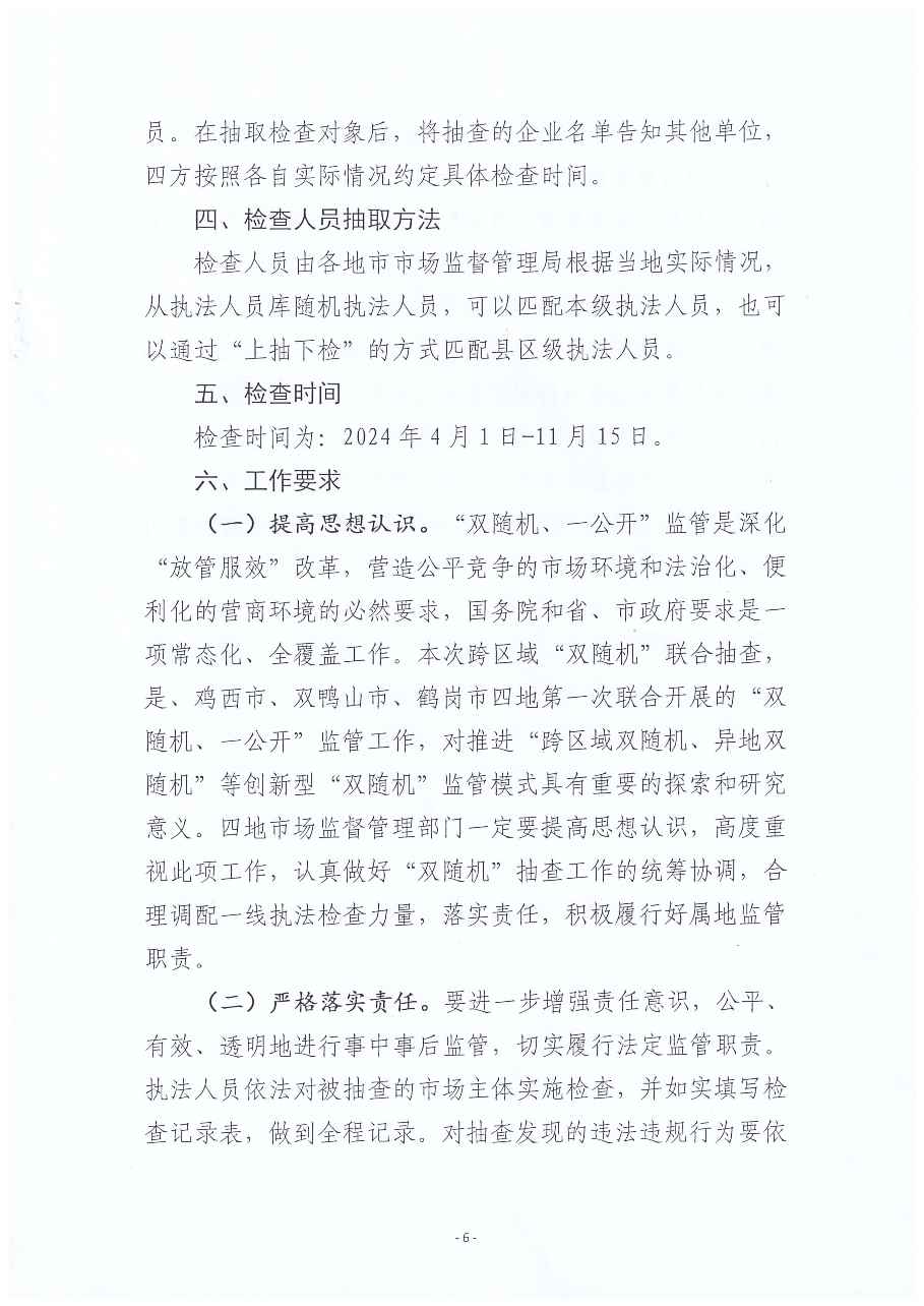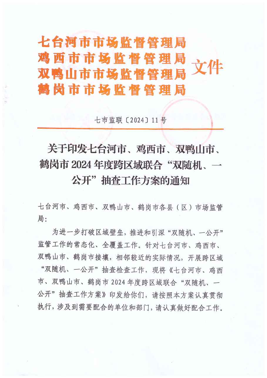 关于印发七台河市、鸡西市、双鸭山市、鹤岗市2024年度跨区域联合“双随机、一公开”抽查工作方案的通知