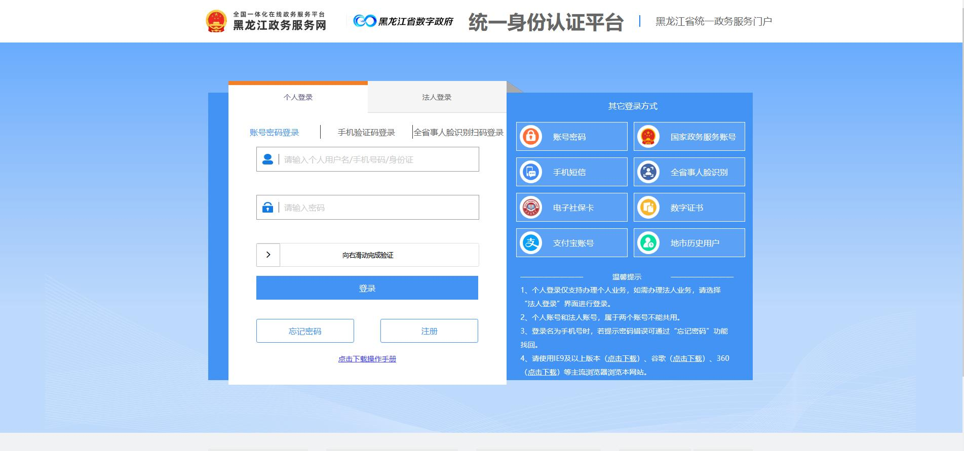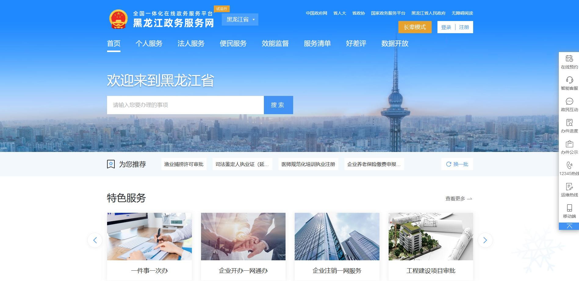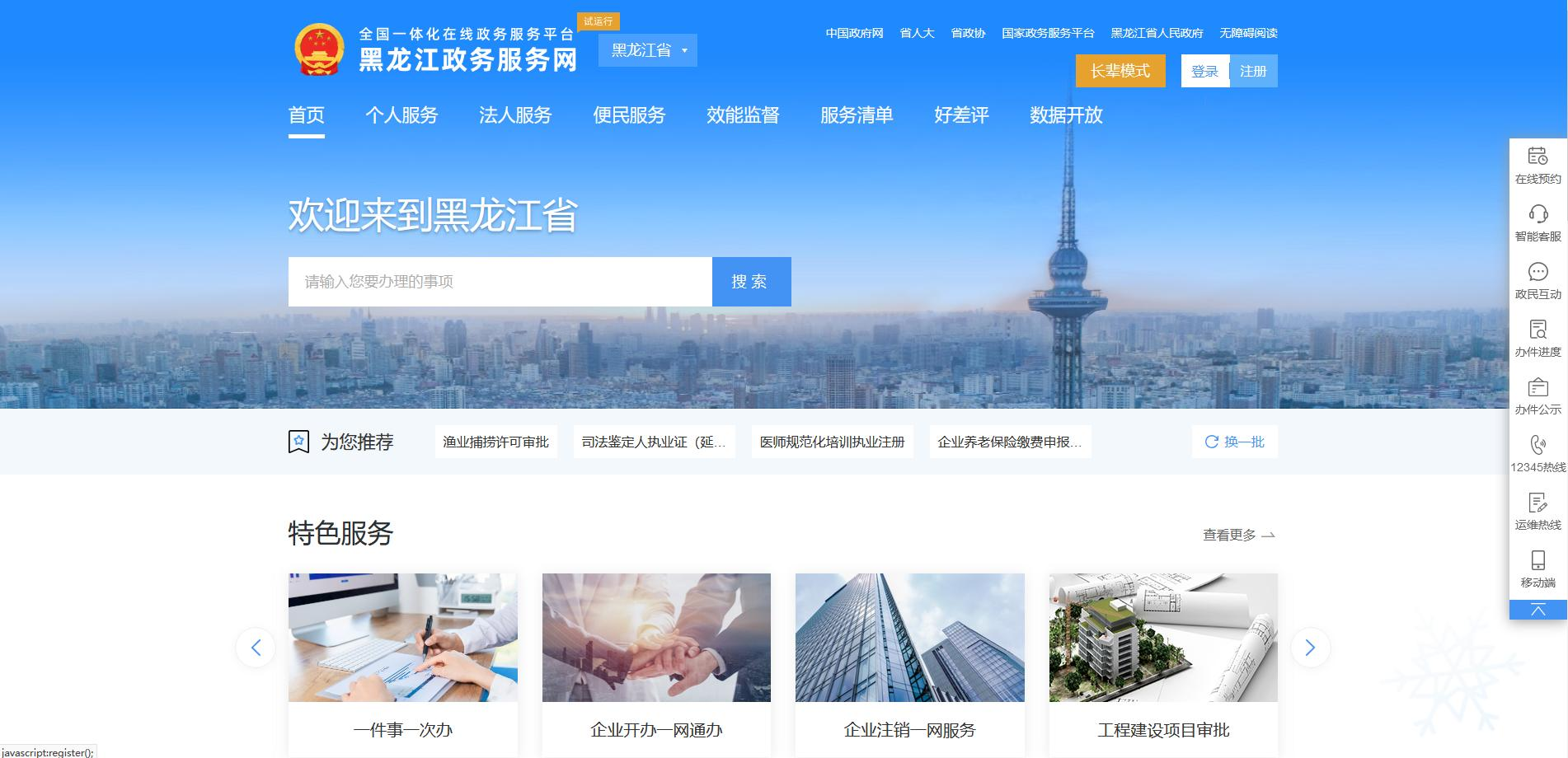 1.打开黑龙江政务服务网网站:https://www.zwfw.hlj.gov.cn/